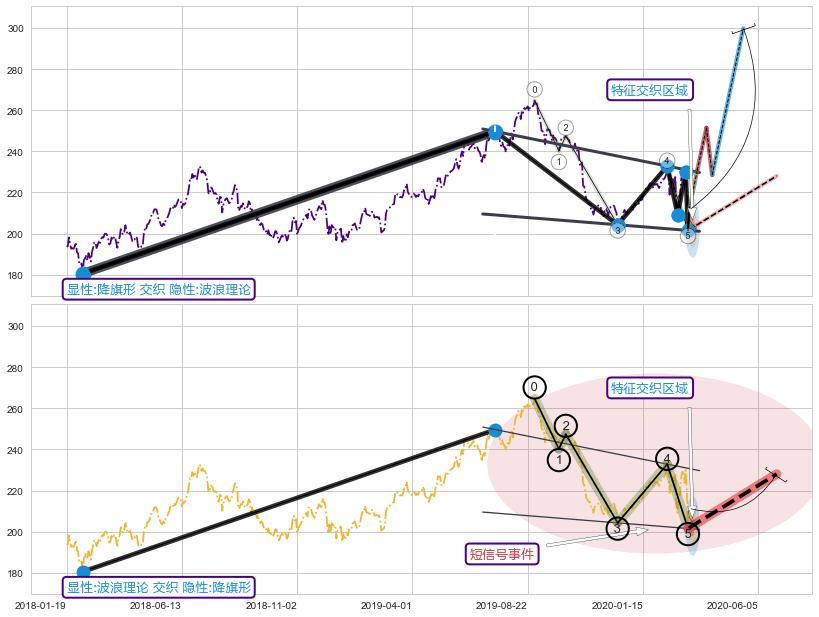 ➢ 波浪理论属【短级别信号事件】降旗形属【长级别信号事件】长短周期组合信号事件, 短长事件长度比25.62%