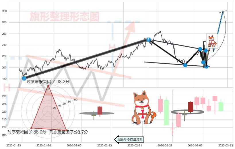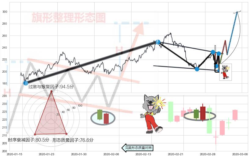 ➣ 【未确认突破,预测即将形成突破】降⚑旗形起点:2018-02-08, 预测突破点:2020-03-24,形态共534交易日