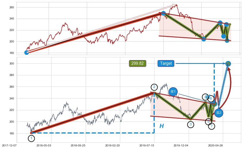 ➢ 【仅预测突破】最后价格:211.34与预测突破价格:230.68→【空间较大】后续最小【整理】第一目标价格→(2020-05-19: 299.82 )