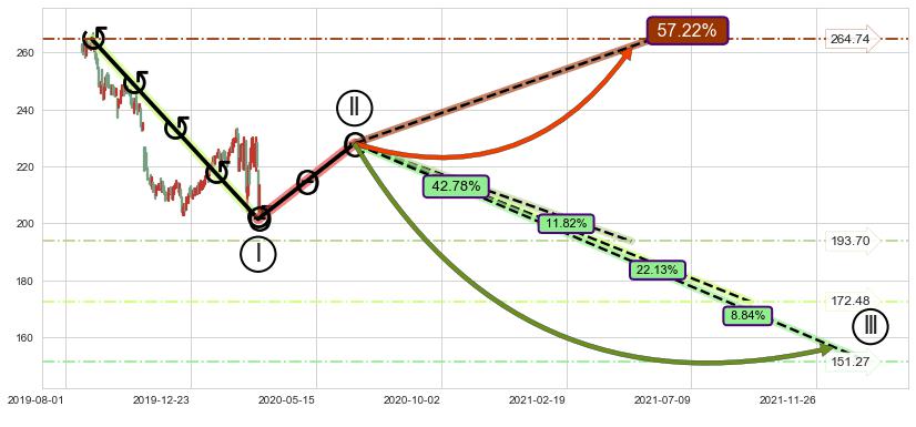 ➢ 循环浪继续向下【最高】位置(2021-05-04, 193.70),匹配聚类样本比例27.62%, 可能性概率11.82%