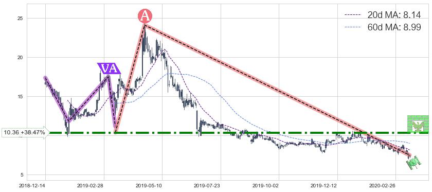 ♘ 阻力价格位10.36,可信任强度70.44%,距离最后交易2020-03-13形成的收盘价格7.48相差 +38.47%