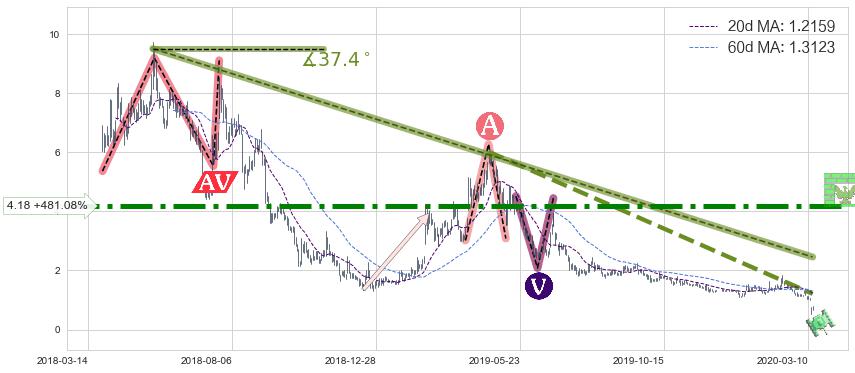 ➣ 【仅预测突破】最后价格:0.7200与预测突破价格:1.3471→【空间较大】后续最小【整理】第一目标价格→(2020-06-05: 4.51 )