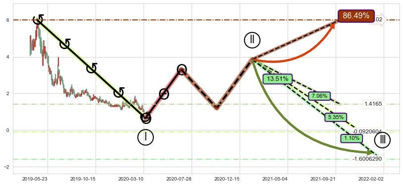 ➢ 循环浪继续向下【最低】位置(2022-02-02, -1.6006290),匹配聚类样本比例8.16%, 可能性概率1.10%