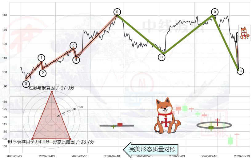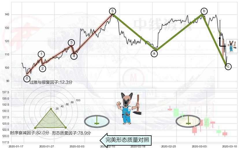 ➢ 🕰 价格走势在2020-03-04至2020-03-05期间形成吊颈线(上吊线),残存影响值:-2.59