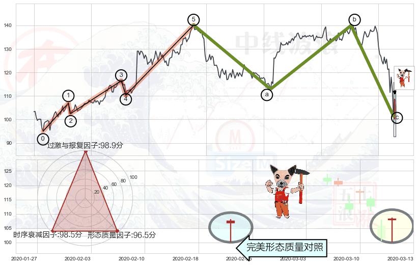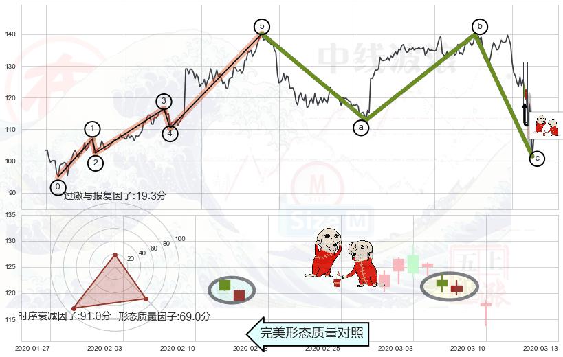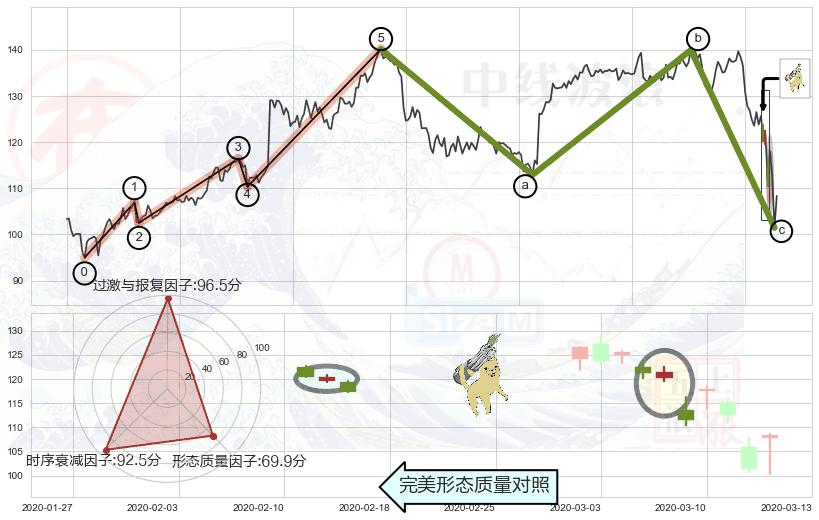 ➢ 🕰 价格走势在2020-03-13至2020-03-13期间形成锤头线(锤子线),残存影响值:8.46