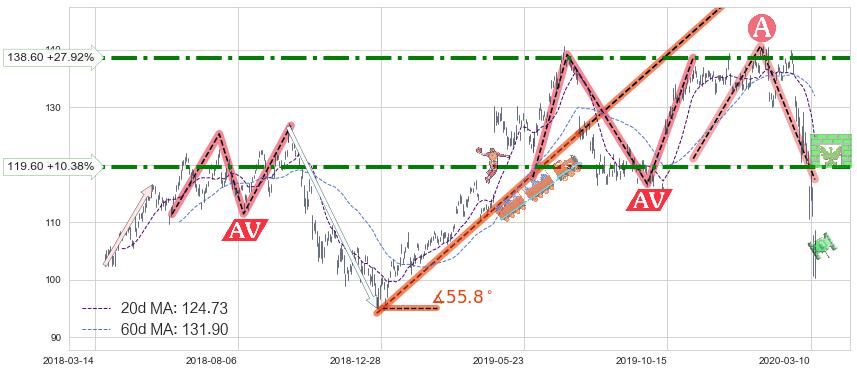 ♘ 阻力价格位119.60,可信任强度82.01%,距离最后交易2020-03-13形成的收盘价格108.35相差 +10.38%