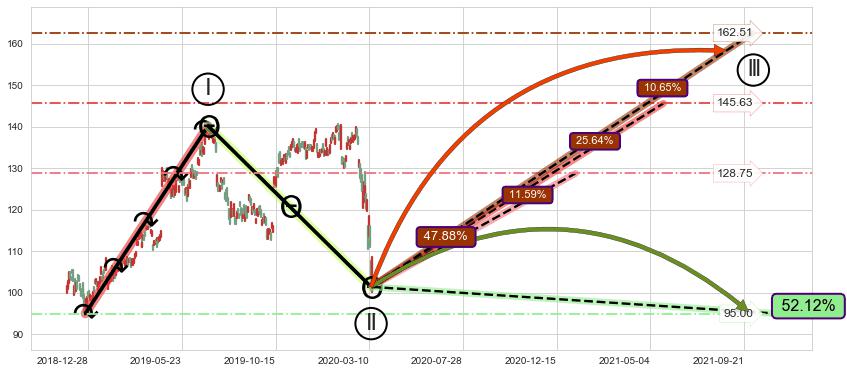 ➣ 循环浪继续向上【平均值】位置(2021-05-24, 145.63),匹配聚类样本比例53.54%, 可能性概率25.64%