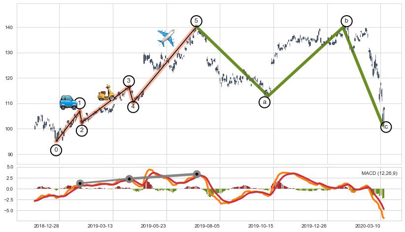 ➣ 下跌螺旋桨 + 波浪理论击穿破位C点继续下跌信号叠加后【目标达成率】中等,【看空】信号叠加【存续影响中等】