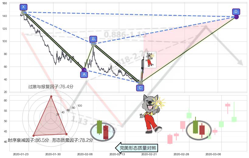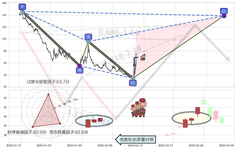 ➢ 曙光初现形态 🔜 谐波鲨鱼下沉击穿c上涨拐点 综合量化分数:59.22 【偏多】