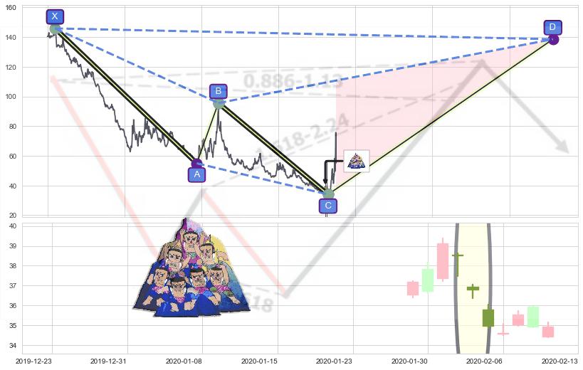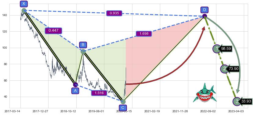 ➣ 未完成【鲨鱼】形态起点X: 2017-04-19, 已到达C点: 2020-02-12, 预测最终D点: 2022-05-11, 共1293交易日