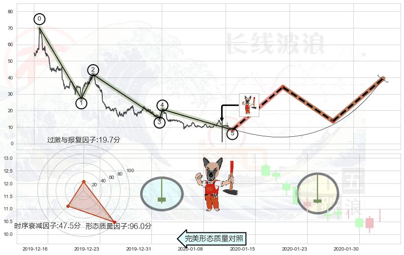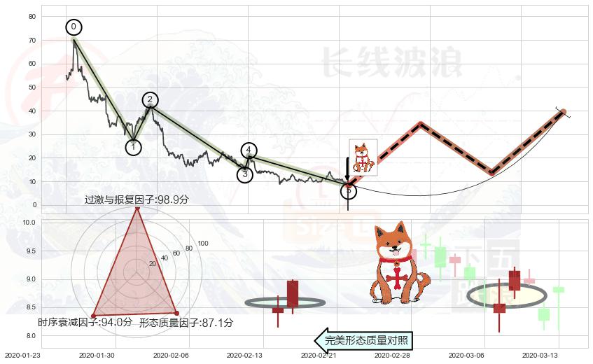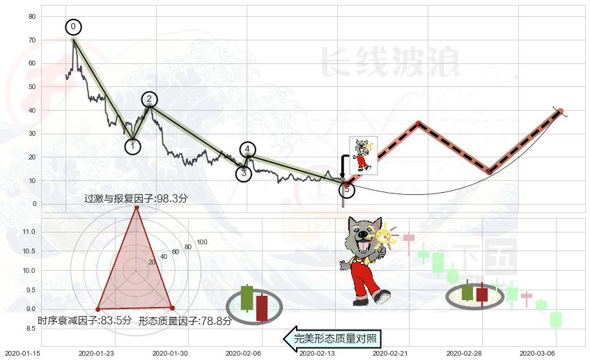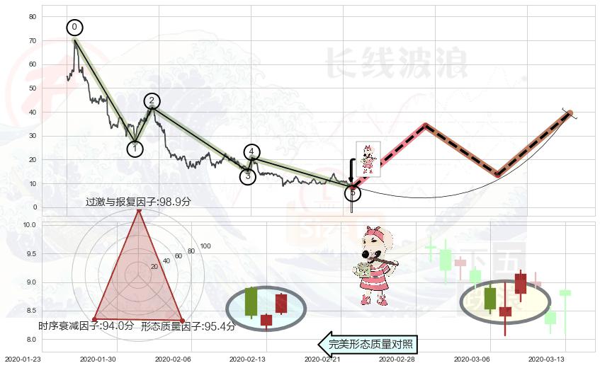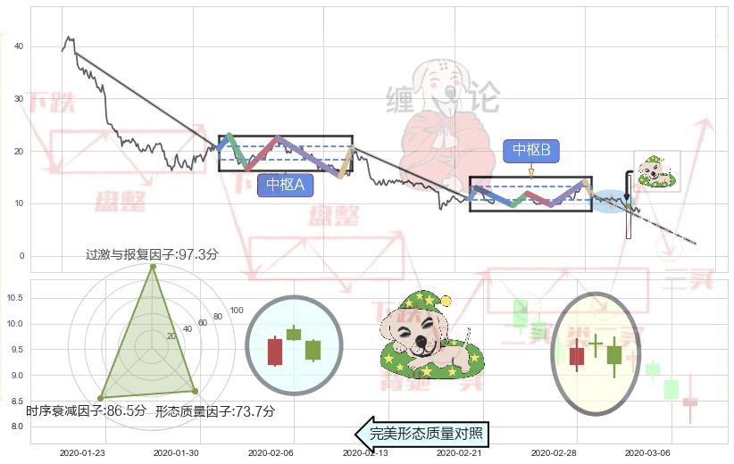 从2017-10-16至2020-03-13,共包含606个交易日,阶段股价下跌-169.02%,阶段股价变动位移路程比: 1 : 9,下跌趋势角度: 44.0
