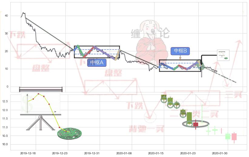 ➣ 缠论中枢点:猜想破位中枢B后持续下拉 → 下跌 → 破位中枢B支撑 → 持续趋势跟踪