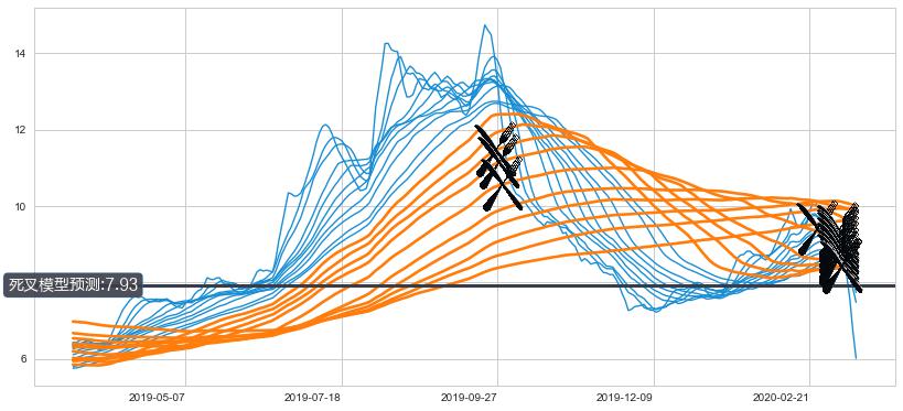 📉 多条均线基于【死叉历史模型】预测最低波谷价格的平均值: 7.93
