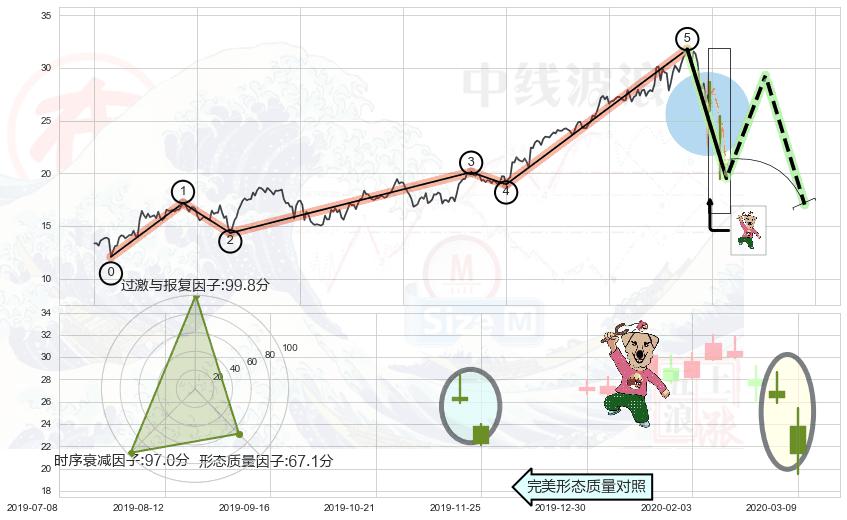 ➢ 顶部尽头线(下山虎) + 波浪理论上涨浪:浪5回调拐点信号叠加后【反向回撤率】偏高,【看空】信号叠加【存续影响降权】