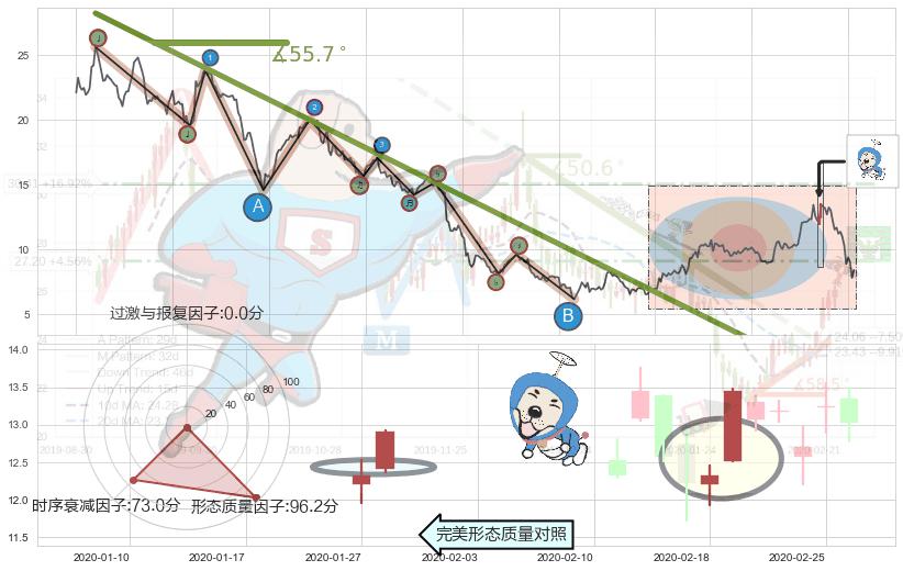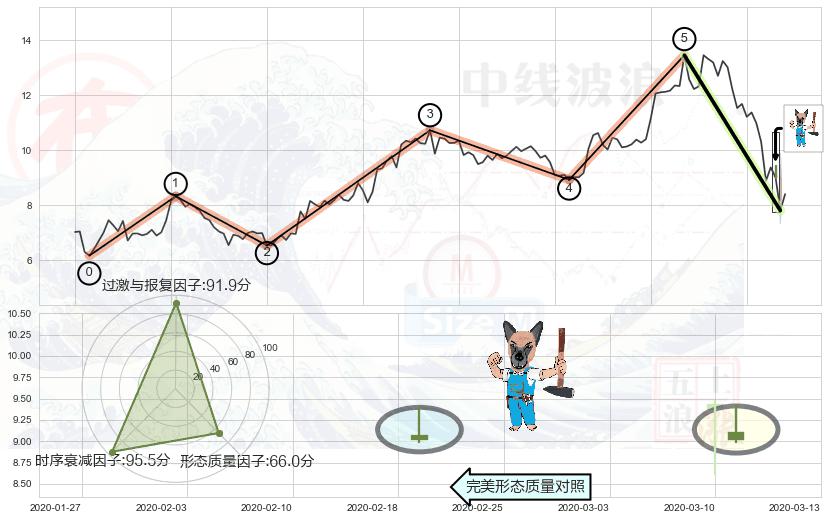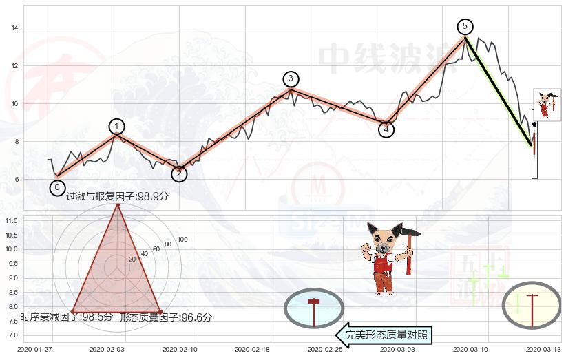 ➢ 🕰 价格走势在2020-03-13至2020-03-13期间形成锤头线(锤子线),残存影响值:8.42