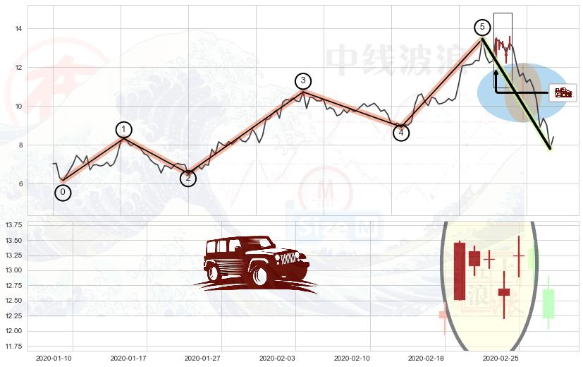 ➢ 收盘价(2020-02-14: 12.22 )→回踩→第一根k线高点(2020-02-11: 12.81 )