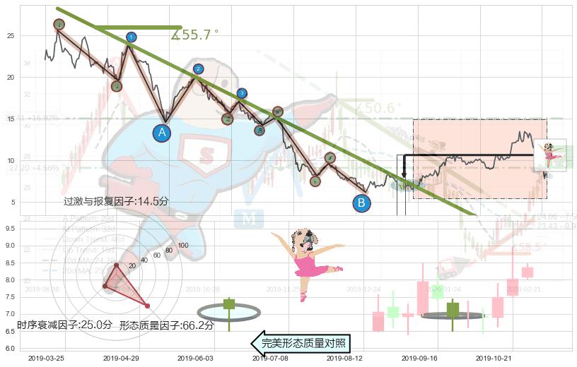 从2018-08-20至2019-09-10,共包含266个交易日,阶段股价下跌-100.70%,阶段股价变动位移路程比: 1 : 5,下跌趋势角度: 55.7