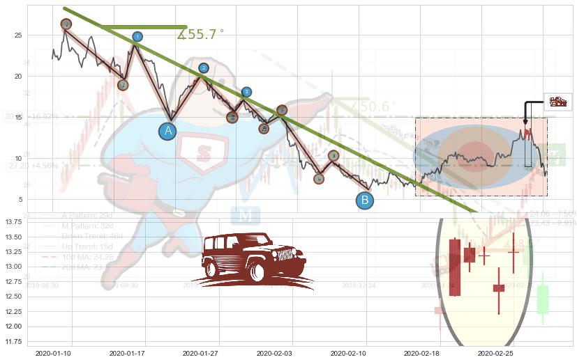 从2020-02-03至2020-03-13,共包含29个交易日,阶段股价下跌-23.49%,阶段股价变动位移路程比: 1 : 5