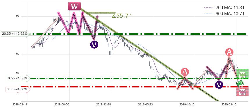 ♘ 支撑价格位6.35,可信任强度74.80%,距离最后交易2020-03-13形成的收盘价格8.40相差 -24.36%