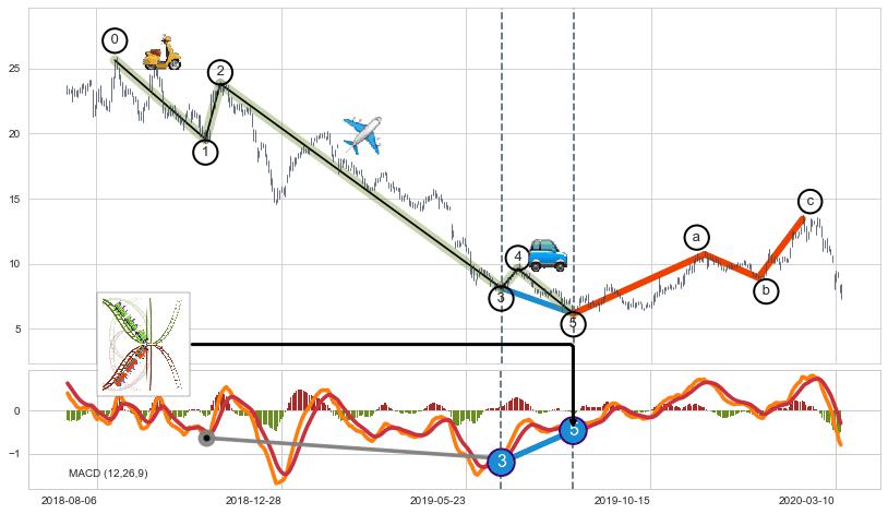 ➣ 波浪理论:猜想达到c点后小反弹终止反转下跌 → 下跌 → 【拐点】临近 → 阶段均值回复结束后继续大周期趋势跟踪