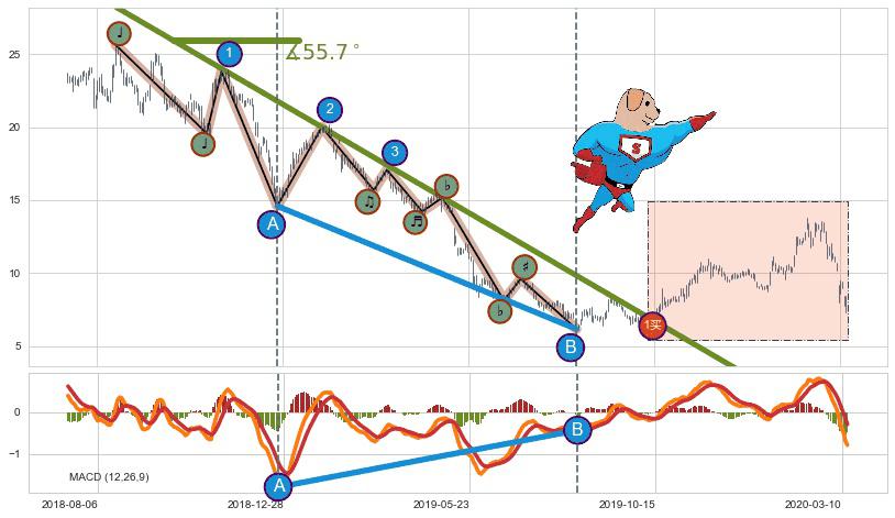 ➣ 波浪理论:猜想达到c点后小回调终止反转上涨 → 上涨 → 【拐点】临近 → 阶段均值回复结束后继续大周期趋势跟踪