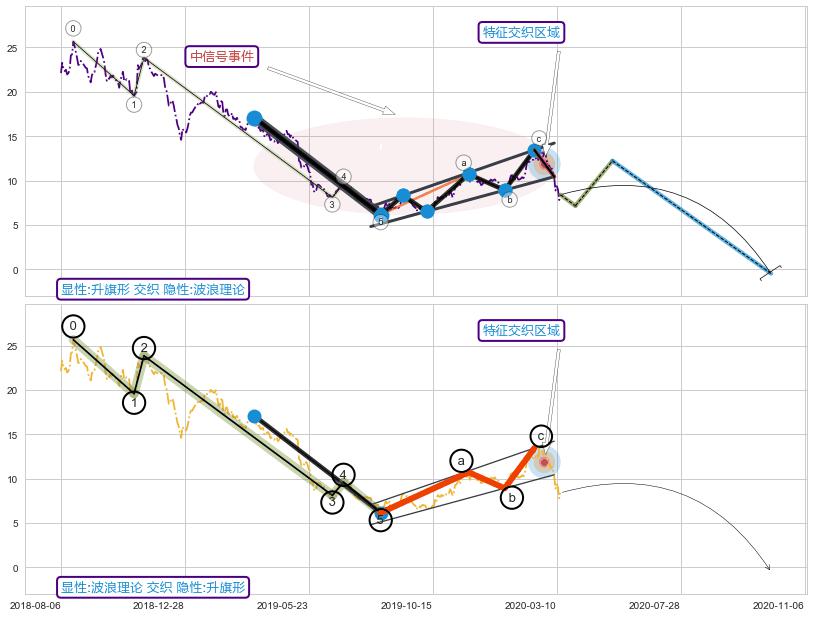 ➢ 波浪理论:猜想击穿破位c点后继续下跌 → 下跌 → 风险信号 → 小趋势跟踪