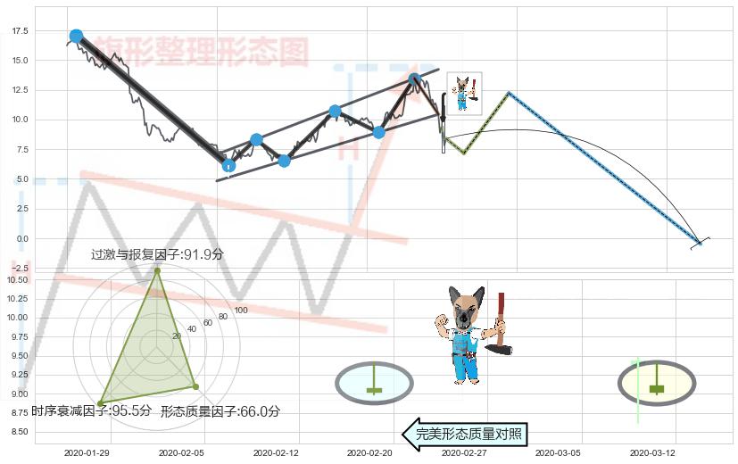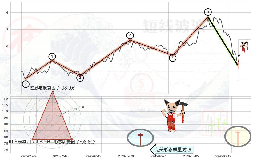 ➢ 🕰 价格走势在2020-03-13至2020-03-13期间形成锤头线(锤子线),残存影响值:8.42