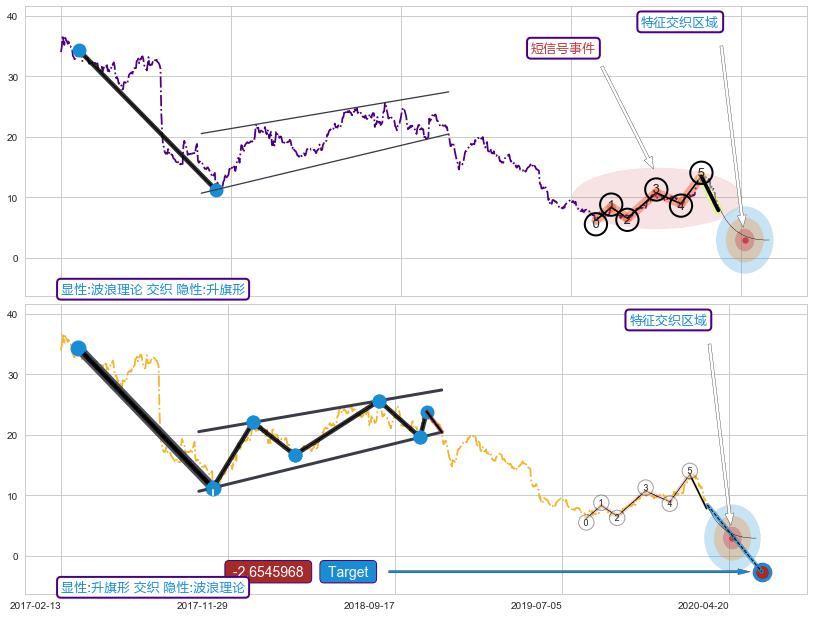 ➣ 【看空】信号叠加后首先朝【反向回撤】方向,之后再次起到影响朝【目标达成】方向