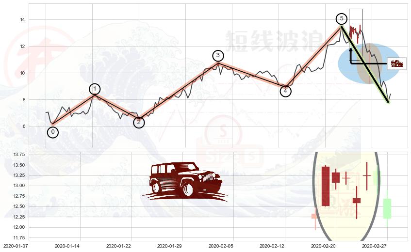 ➣ 波浪理论:猜想击穿破位c点后继续下跌 → 下跌 → 风险信号 → 小趋势跟踪
