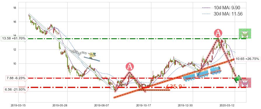 ♘ 阻力价格位13.58,可信任强度56.90%,距离最后交易2020-03-13形成的收盘价格8.40相差 +61.70%