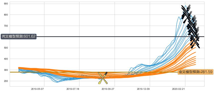 ➢ 10小时均线于(2020-02-24: 832.70)形成【死叉】基于【死叉历史模型】预测死叉后最低波谷价格: 817.34, 死叉后最低价格546.62,已经下跌超出预测最低波谷价格, 预期反弹