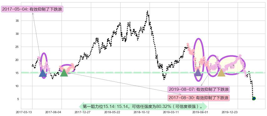♘ 阻力价格位15.14,可信任强度80.32%,距离最后交易2020-03-13形成的收盘价格5.20相差 +191.11%