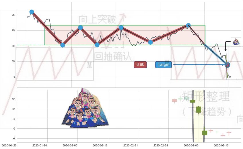 ➢ 【已达成】最小【整理】第一目标价格→(2020-03-09: 8.90 ), 后续继续【整理】下跌动力微弱,下跌较小
