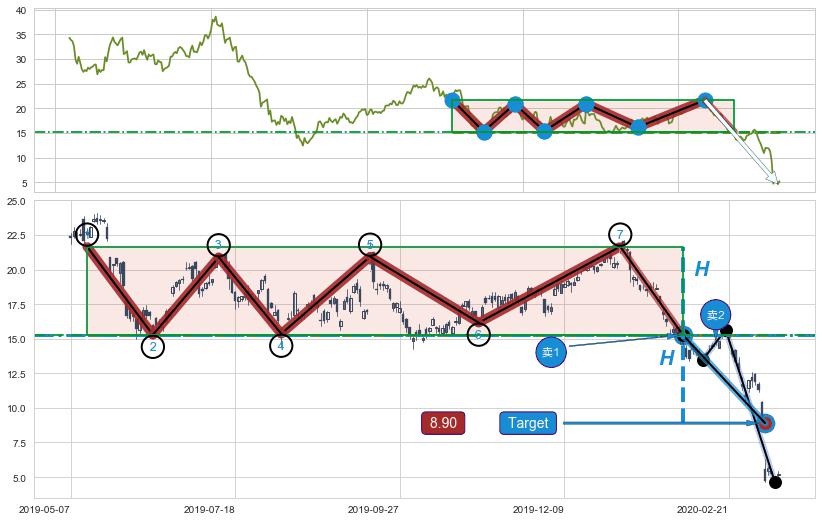 ➢ 【多方力量耗尽】已在2020-01-31突破矩形提供的【支撑】颈线 15.28 →箱形震荡盘整结束