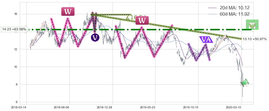 ♘ 阻力价格位14.23,可信任强度99.00%,距离最后交易2020-03-13形成的收盘价格8.70相差 +63.58%