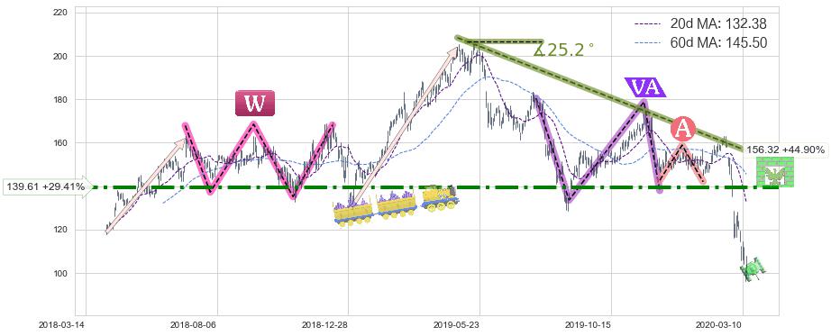 ➢ AI预测: 假定反转如期而至,第❶价格目标位置(2020-05-20, 138.98)