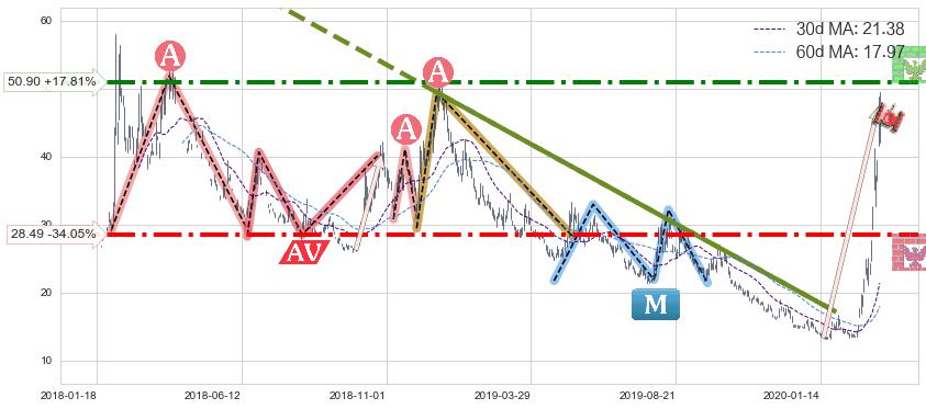 ♘ 支撑价格位28.49,可信任强度76.95%,距离最后交易2020-03-13形成的收盘价格43.20相差 -34.05%