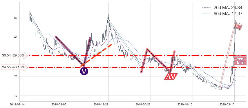 ♘ 支撑价格位30.54,可信任强度77.08%,距离最后交易2020-03-13形成的收盘价格43.20相差 -29.30%