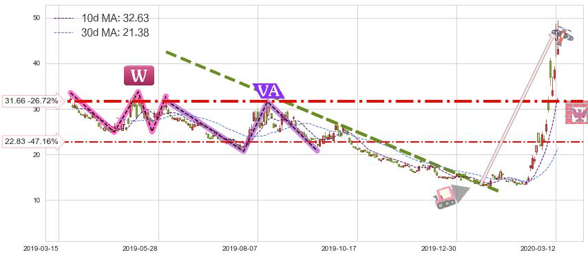 ♘ 支撑价格位31.66,可信任强度78.40%,距离最后交易2020-03-13形成的收盘价格43.20相差 -26.72%