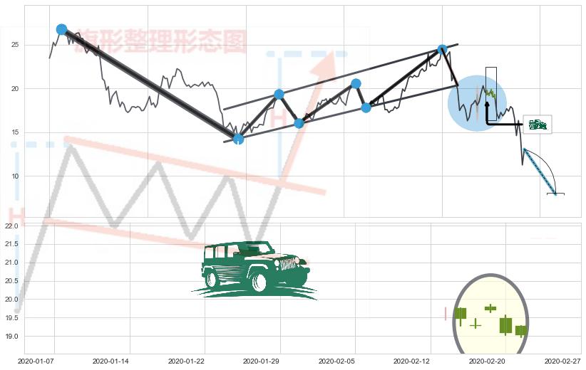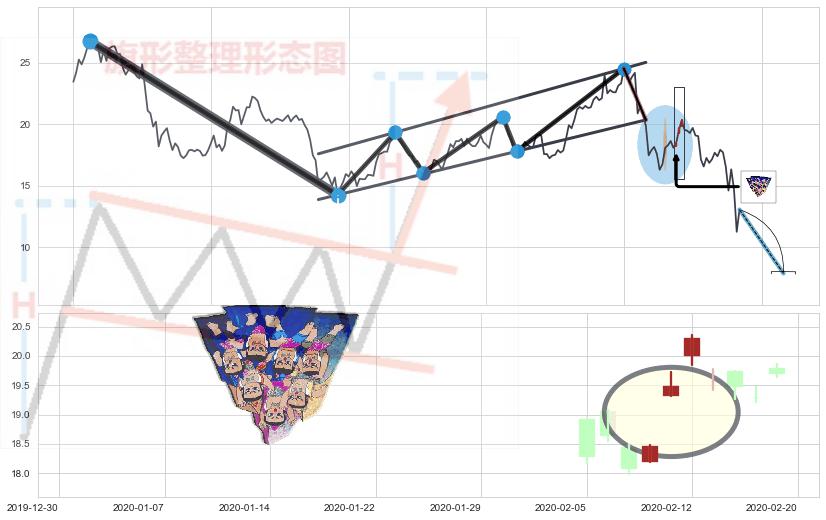 2020-01-31: 时域附近第一阻力位17.44持续的对下跌趋势进行阻拦,有效地放缓了下跌的速度。
