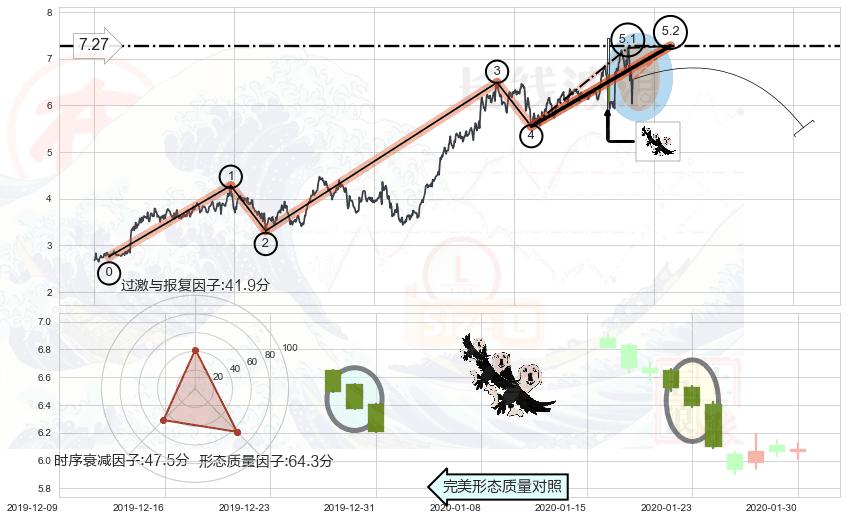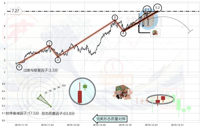 ➢ 🕰 价格走势在2019-12-26至2020-01-02期间形成高档五阴线,残存影响值:-0.94