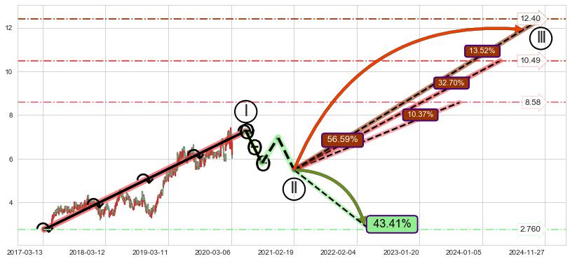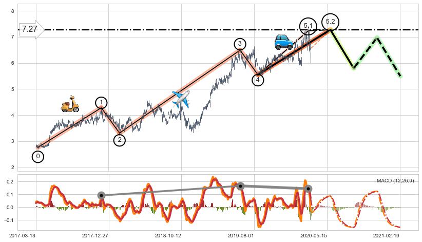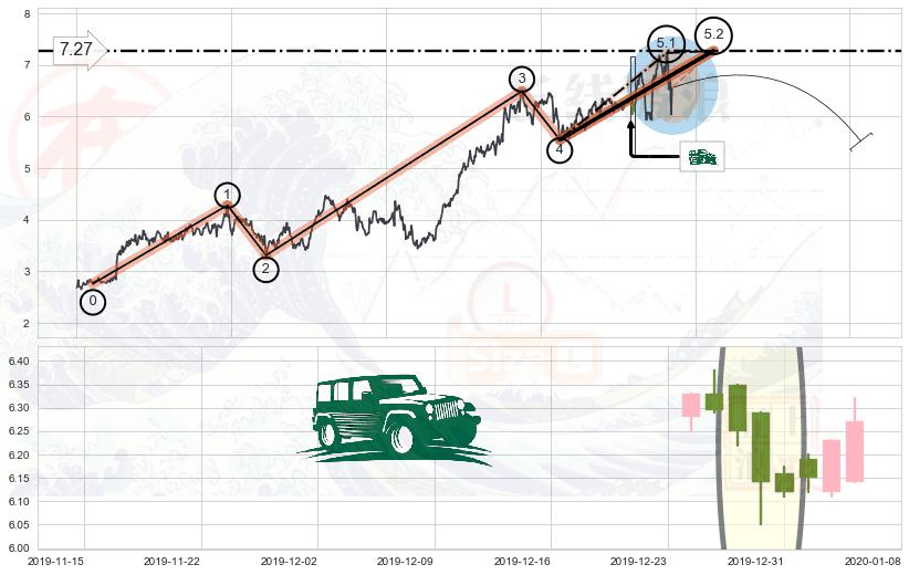 ➣ 5.1: 预测当前第5浪位置(2020-03-04, 7.23),仍然有上升空间