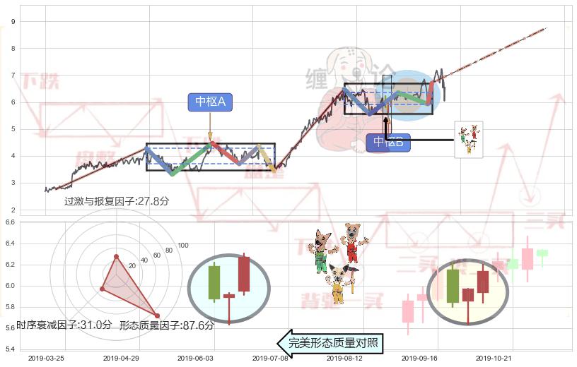 ➣ 上涨镊子线(U形磁铁) + 缠论中枢点突破中枢B阻力拉升信号叠加后【目标达成率】中等,【看多】信号叠加【存续影响中等】