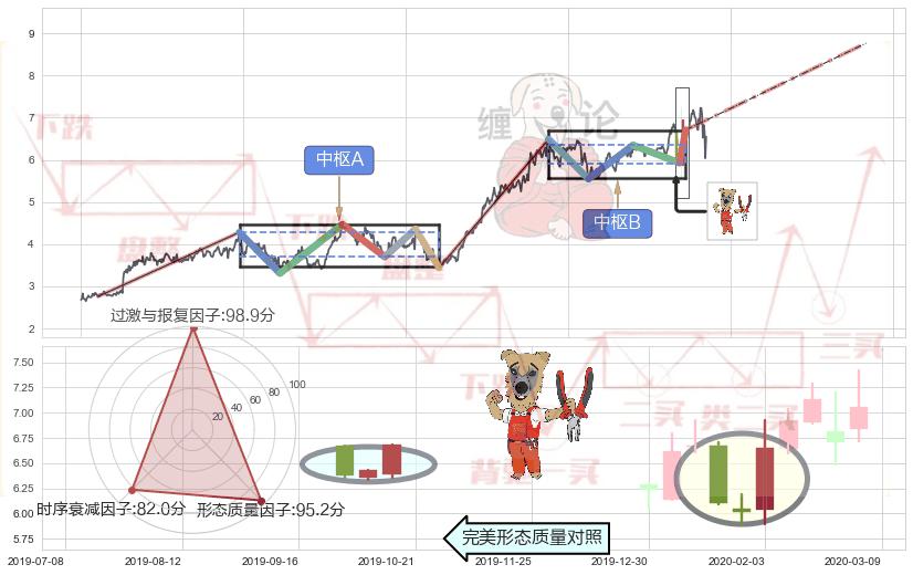 ➣ 【中枢B】:2019-06-06-2020-02-06,中枢由5笔构成,共170交易日, ZG=6.35, ZD=5.93