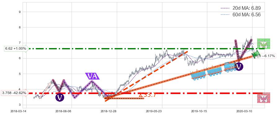 ♘ 支撑价格位3.758,可信任强度86.33%,距离最后交易2020-03-13形成的收盘价格6.55相差 -42.62%