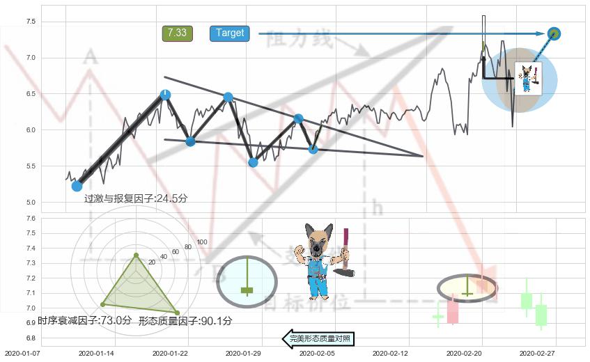 ➢ 【买1】: 激进型 买点 →(2020-01-07: 6.32 )形成突破上升【对称】三角形整理【整理】形态