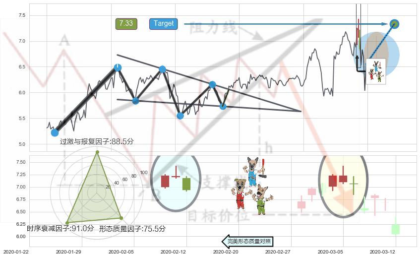 ♘ 支撑价格位5.98,可信任强度77.59%,距离最后交易2020-03-13形成的收盘价格6.55相差 -8.69%