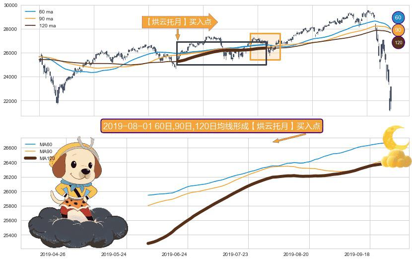 ⚀ 2019-06-05日-2019-09-27日显现 60日-90日-120日均线 【烘云托月】买入点 看多信号,后市看涨,买入