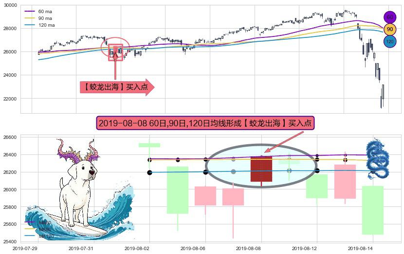 ⚀ 2019-08-08日显现 60日-90日-120日均线 【蛟龙出海】买入点 看多信号,后市看涨,买入