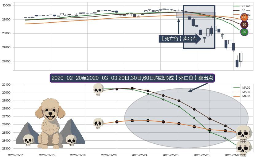 ⚀ 2020-02-21-日至2020-03-03-日显现 20日-30日-60日均线 【死亡谷】卖出点 看空信号,后市看跌,卖出